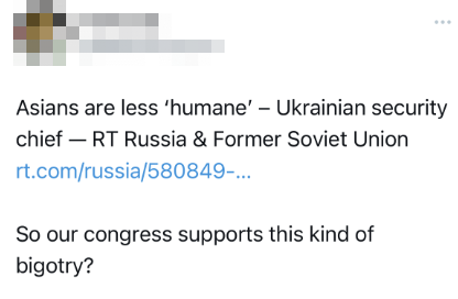 丹尼洛夫的言论也在网络上引发争议。有人指责,“这是赤裸裸的种族歧视。怎么会有人能为这种思维方式开脱呢?”