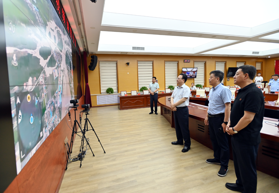 会议结束后,景俊海、胡玉亭通过视频连线察看调度舒兰市金马镇、榆树市泗河镇等地防汛救灾工作。