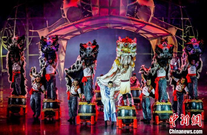 由广州歌舞剧院带来的大型民族舞剧《醒·狮》在乌鲁木齐文化中心大剧院上演,这也是该剧首次走进新疆。刘新 摄