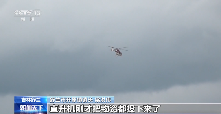 舒兰市开原镇属于“两山夹一沟”的山区地形,村与村之间有高低之差,虽然有的村庄水位下降,人员能够正常转移,但也有部分村庄被大水阻拦,当地通过直升机将1900余份生活物资运往被困村庄。