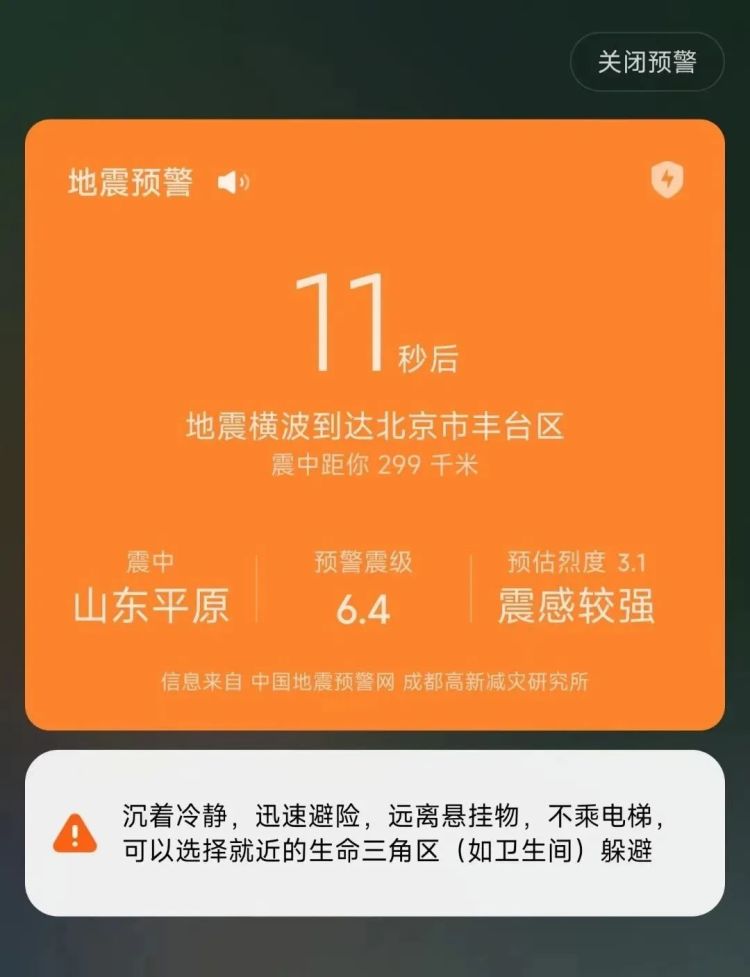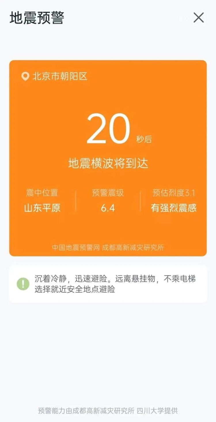 今天(8月6日)凌晨2时33分,山东德州市平原县发生5.5级地震,北京市大部分地区有震感(点开看:山东德州突发5.5级地震,余震超50次!北京多地有震感)。地震发生后,不少市民的手机上收到了地震横波到达时间、震中距离的预警提醒。