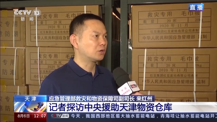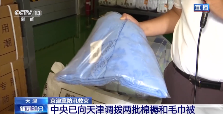 总台央视记者 黄达:我现在周围储存的就是应急管理部调拨至天津的中央救灾物资。目前,仓库中储存有800箱的毛巾被和1900包的褥子。物资的主要去向是发放至天津市各区的居民安置点。