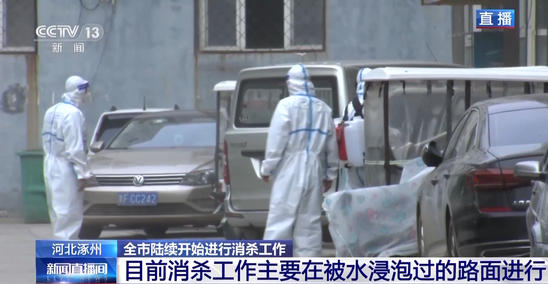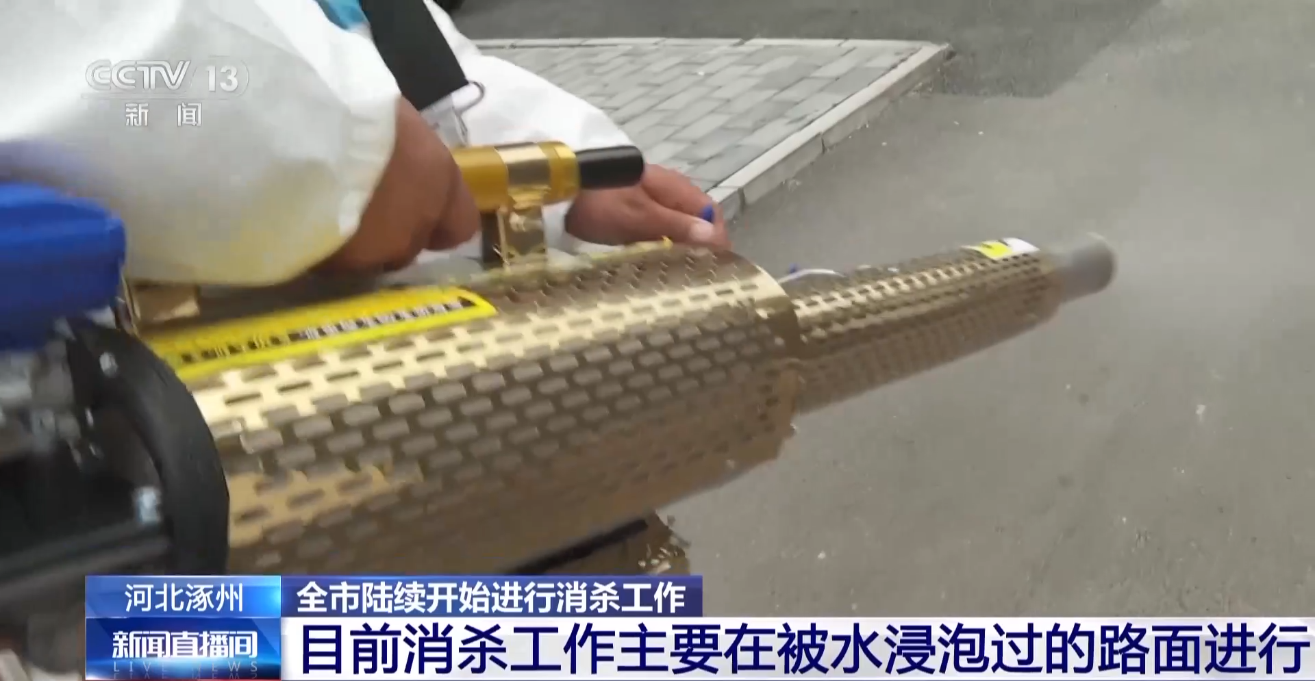 这几天消杀的地方是被水浸泡过的街道路面和小区的路面。目前涿州市区的大部分地区已经退水,主要的工作就是小区地下室、地下车库的排涝、清淤、消杀和恢复供水供电。