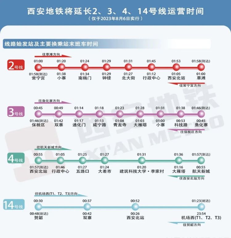 3号线 两端站末班车发车时间均延长至次日00:45;
