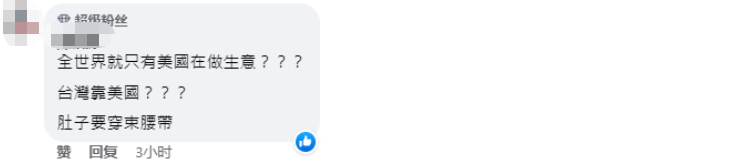 “全世界就只有美国在做生意???台湾靠美国???肚子要穿束腰带。”↓