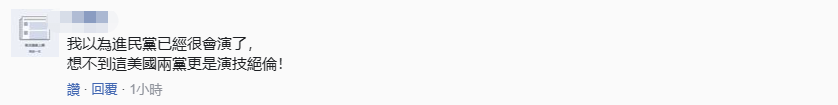 还有岛内网民评论,“我以为民进党已经很会演了,想不到这美国两党更是演技绝伦!”↓