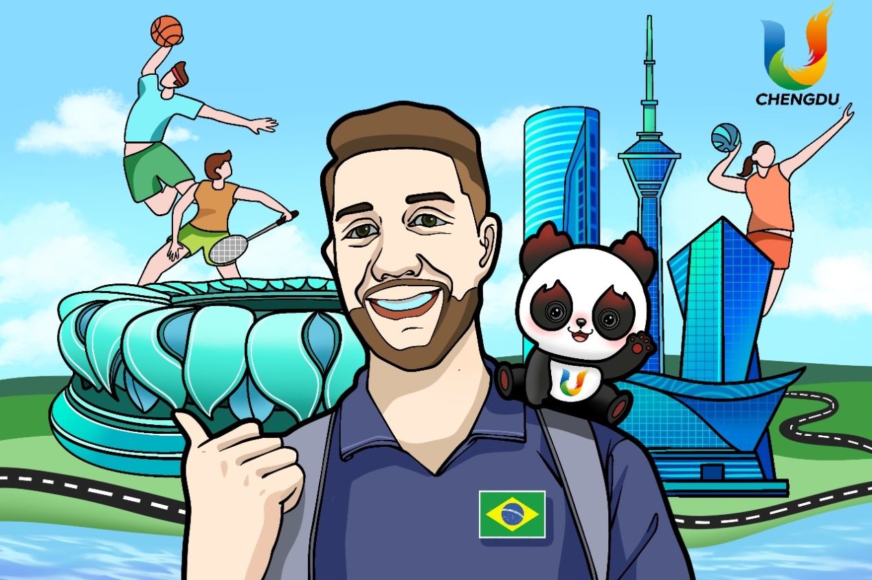 面对镜头,巴西篮球运动员为成都点赞,喜爱大熊猫的他称比赛开始前会去看大熊猫。