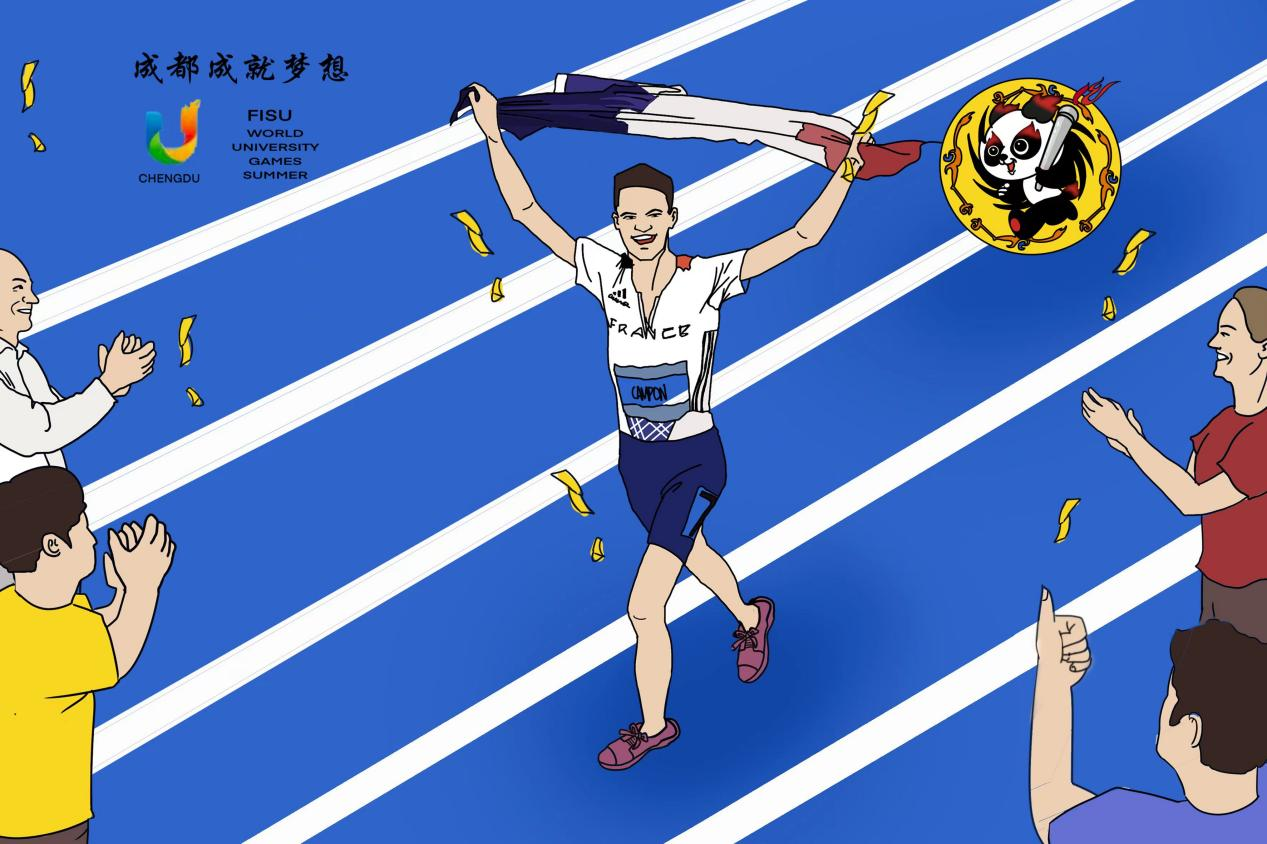 在男子1500米决赛上,来自法国的坎皮恩夺冠后赛后绕场致谢:“他们是了不起的观众”。