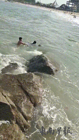 事发后,32岁的三明小伙杨明立即跳入海中救援营救。