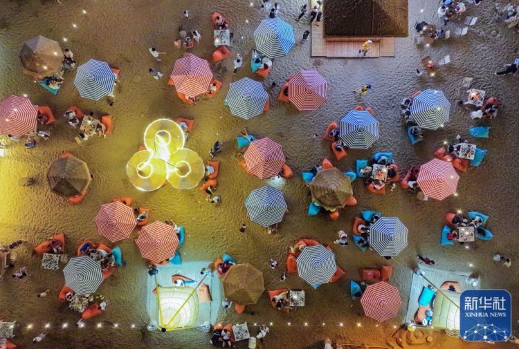 8月5日晚,江苏省连云港市在海一方公园热闹非凡,夜间消费火爆。新华社发(王健民 摄)