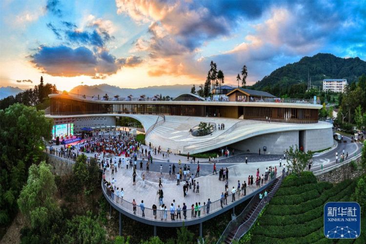 8月4日傍晚,游客在湖北省宜昌市夷陵区“云居邓村 遇见清凉”纳凉季上游玩(无人机照片)。新华社发(张国荣 摄)