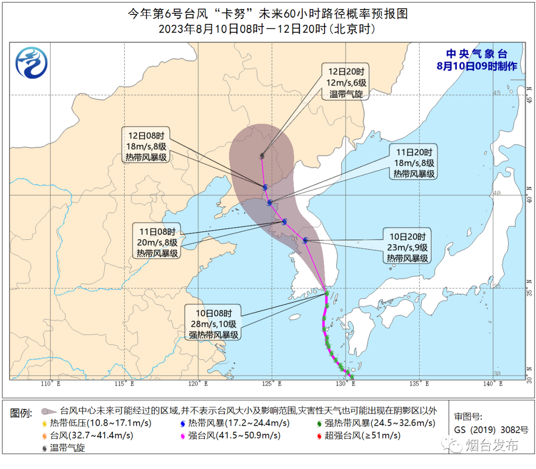 今年第6号台风“卡努”已于10日10时在韩国庆尚南道沿海登陆,登陆时中心附近最大风力为10级(28米/秒,强热带风暴级),中心最低气压975百帕。预计“卡努”将以每小时30公里左右的速度沿朝鲜半岛西侧北上,强度将明显减弱,12日早晨到上午移入我国东北地区。