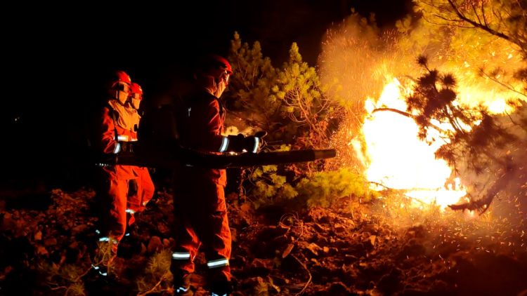 经过一夜奋战,8月10日8时阿龙山阿北林场西南线实现封控,内蒙古森林消防总队大兴安岭支队和呼伦贝尔支队消防救援人员正在开设隔离带,向火场纵深清理。