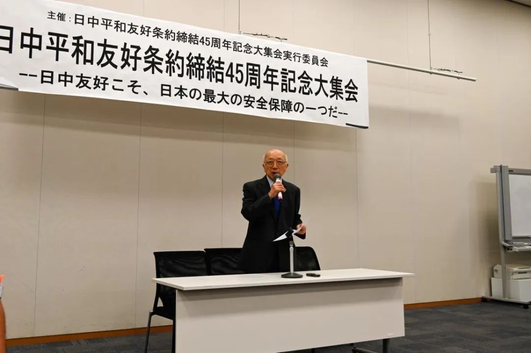 藤田理事长代表主办方致辞,表示值此日中和平友好条约缔结45周年之际,日方要深刻反省侵略战争历史教训,始终牢记和平友好才是日本最大的安全保障之一。日本一些当政者要停止将中国视为假想敌、推进战争准备的错误做法。希望双方为维护日中和平友好和亚洲发展繁荣共同努力。