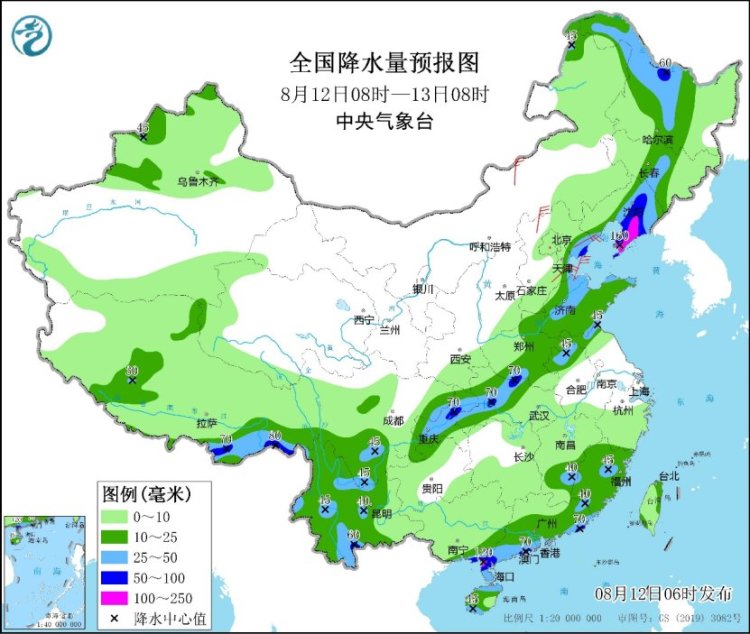 预计,今天白天到夜间,黑龙江中西部、吉林中部、辽宁中东部将有大到暴雨,辽宁东南部的部分地区有大暴雨(100~160毫米);黄淮、江汉、华南东部和南部及重庆、四川南部、云南和西藏东南部等地部分地区有中到大雨,局地暴雨,广东西南部局地大暴雨(100~120毫米)。上述部分地区伴有短时强降水(最大小时降雨量30~50毫米,局地可超过60毫米),局地有雷暴大风或冰雹等强对流天气。中央气象台今晨继续发布暴雨黄色预警。