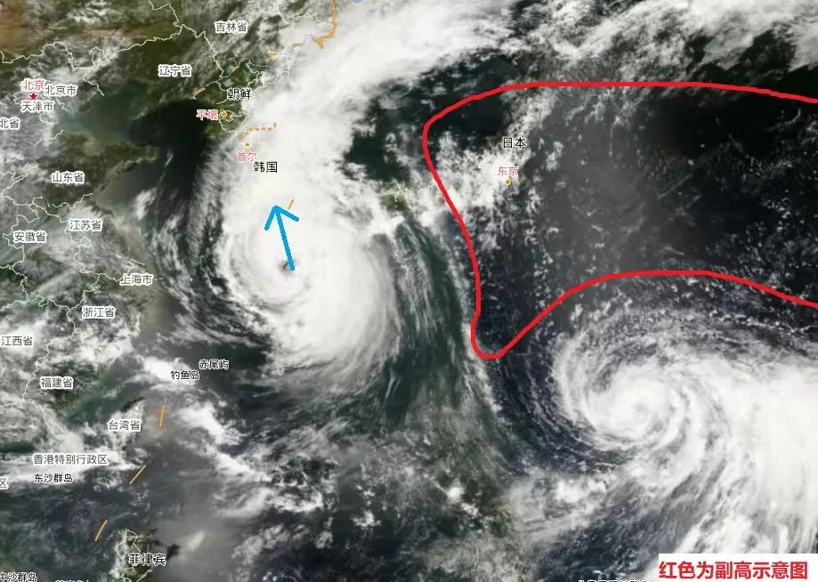 通常北上进入东北地区的台风其整体“形象”已不再如此“精致”,大体可以分为台风本体环流(云系)和外围环流(云系)两部分。