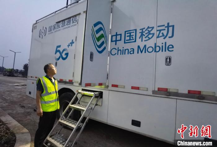 8月9日,抢修人员紧急开通应急通信车,恢复了涿州高新技术产业开发区中冶未来城社区及其周边通信。(徐佳摄)