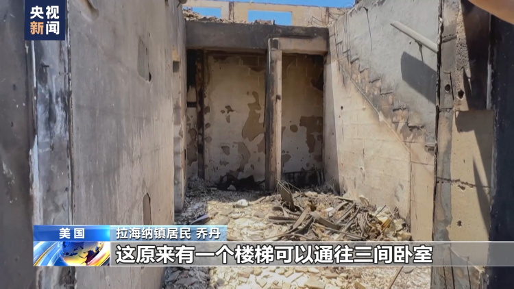 拉海纳镇居民 乔丹:这里原来是门厅,这原来有一个楼梯可以通往三间卧室,这里原来是餐厅,这里原来是客厅。很悲伤,真的很悲伤,拉海纳消失了,整个城镇可以说已经不复存在了。