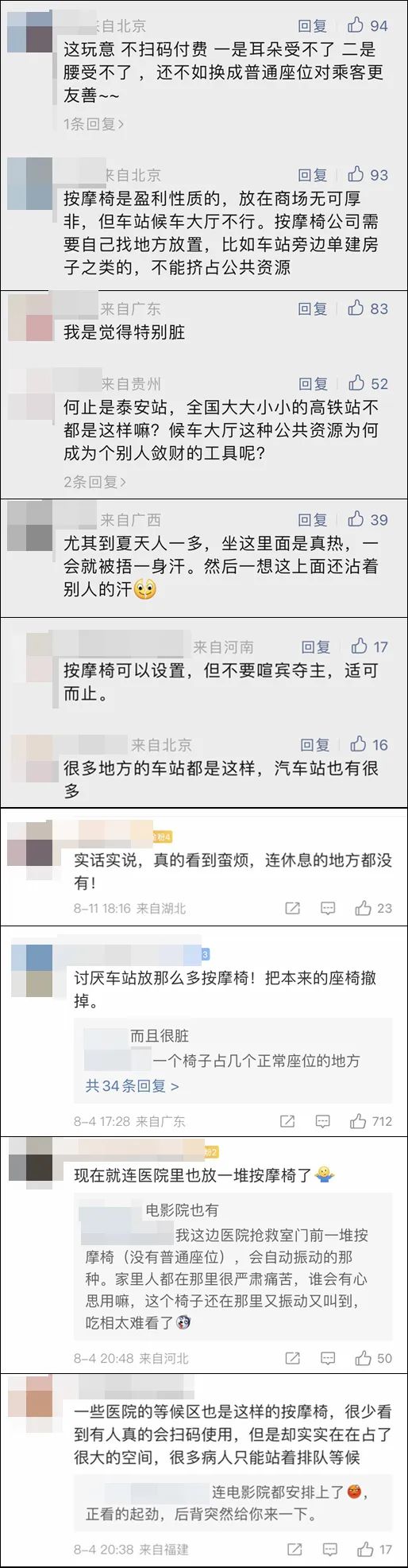 另一位旅客表示,“不按摩的时候,座椅内的按摩突出点让人很不舒服,硌人后背,不适合久坐候车的乘客。”