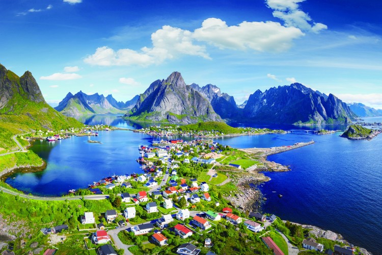 纯净的大海、雄伟的群山、红色的小木屋、绿色的北极光……这里的美景是博物馆画作、摄影作品上的常客,甚至出现在很多欧洲拼图游戏中。美景的诞生地就是挪威北部的小渔村——雷讷。