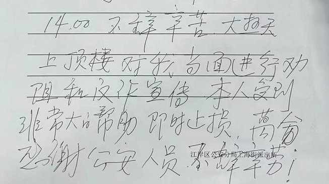 “民警不辞辛苦,大热天上顶楼”