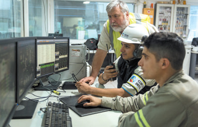 阿根廷提布斯港口是该国最重要的农产品出口枢纽之一,每年数百万吨的大豆、玉米、小麦和其他农产品从这里出发,被送往世界各地。中粮集团有限公司在这里建有码头及产业园。图为中粮集团员工在码头操作车间内工作。