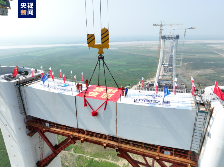 8月16日,安罗高速黄河特大桥主塔最后一节钢横梁吊装完成,历时近400天,黄河上最长公路桥梁的主塔成功封顶。