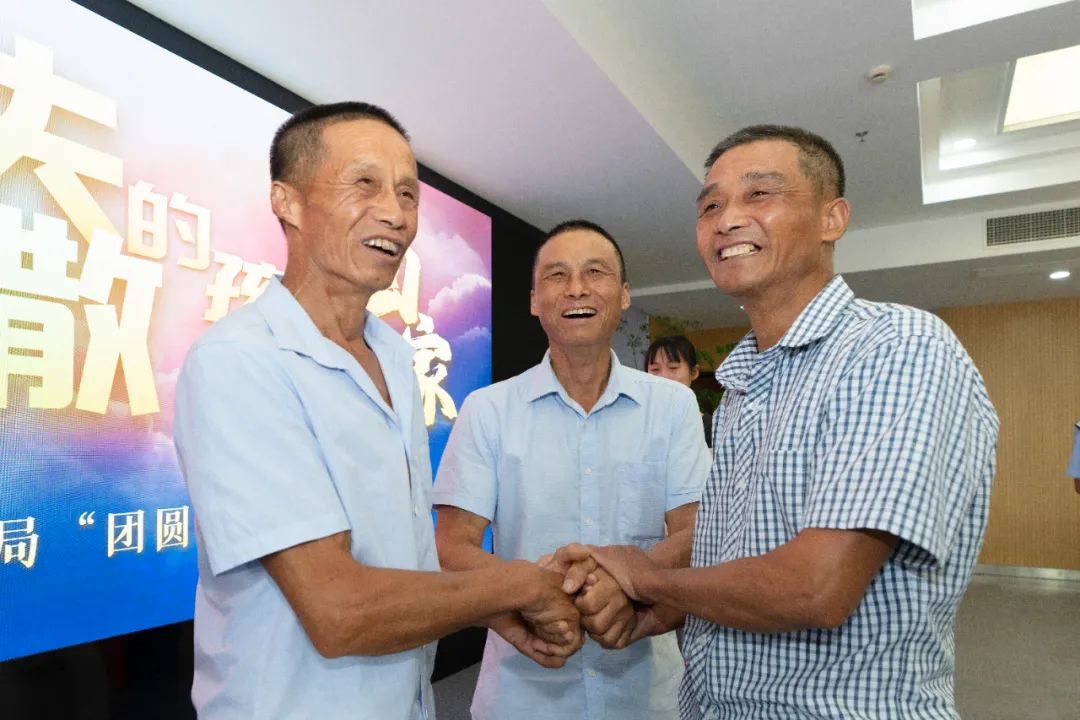 认亲现场,三兄弟紧紧拥抱在一起,互相倾诉着这阔别58年的亲情。