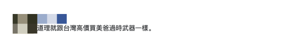 对此,有岛内网民在台媒评论区留言称,“道理就跟台湾高价买美国过时武器一样。”