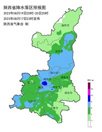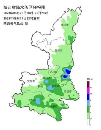 08月20日:雷阵雨转中到大雨,西咸新区、高陵、阎良、临潼、灞桥、蓝田及秦岭北麓山区部分地方暴雨,伴有4-5级阵风,23℃~30℃;