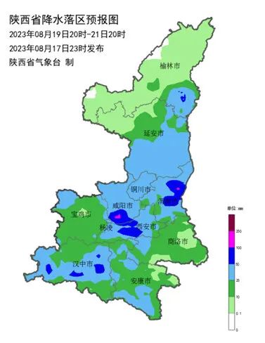 西安市气象台2023年8月18日09时发布重要天气报告:受西风槽和低层暖湿气流共同影响,19日午后至21日上午西安市将有一次伴有强对流天气的明显降雨过程,全市有中到大雨,偏北、偏东及南部山区部分地方将出现暴雨。