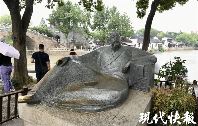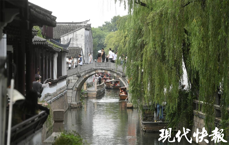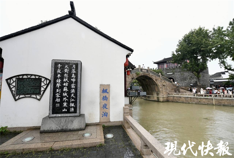 “姑苏城外寒山寺,夜半钟声到客船”,一首《枫桥夜泊》,伴随着寒山寺的钟声流传了上千年。在苏州枫桥夜泊景区,采访团成员们看到,游人如织,横跨在运河上的枫桥,造型古朴简单。