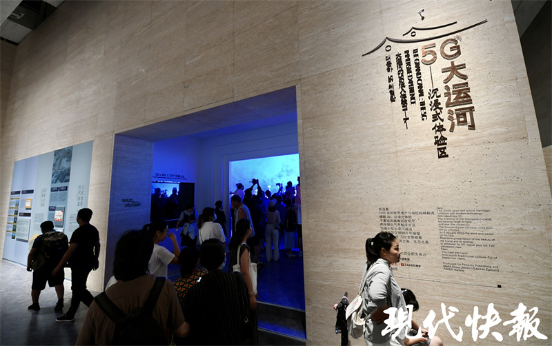 运河边最火爆的博物馆在哪?扬州中国大运河博物馆必须拥有姓名。采访团成员在馆内看到,这里人气爆棚,全国各地的游客汇聚于此。其中人气最高的,当属由凤凰出版传媒集团现代快报策划制作的“5G 大运河”沉浸式体验馆。
