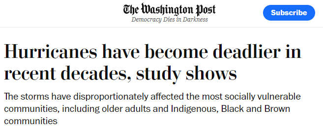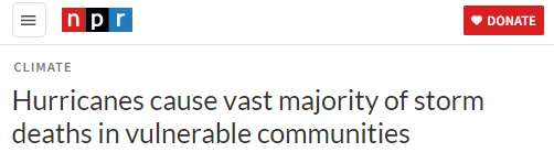 社会不平等也是一个重要因素。佛罗里达州布劳沃德县拥有该州最富裕和最贫穷的社区。研究显示,2016年飓风“马修”过后,死亡集中在该县的贫困社区。帕克斯说:“‘富人有飞机,富人有第二居所’可以撤离。”