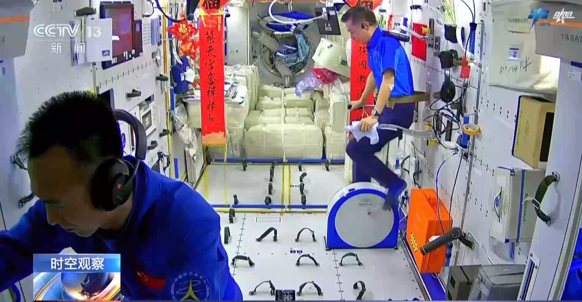 中国航天员科研训练中心研究员 中国载人航天工程航天员系统副总设计师 李莹辉:由于没有重力,会导致随着时间延长,肌肉萎缩、骨骼丢失、骨钙质流失的问题越来越严重。所以为了确保航天员健康,我们一直在不断发展有效的防护对抗措施。从这几次飞行状态来看,措施还是非常有效的,他们的体力,包括对重力再适应的能力都在不断增强。