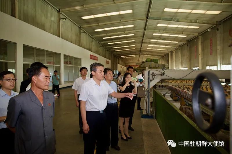 2023年8月18日,王亚军大使率中国驻朝鲜使馆外交官参观大安友谊玻璃厂。朝鲜外务省亚洲一局课长尹振明、南浦市人民委员会对外事业局局长单基元、大安友谊玻璃厂厂长卢益等陪同。