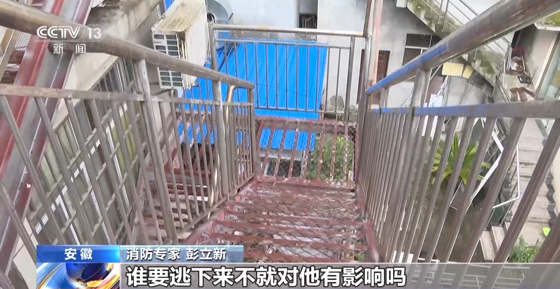 检查组发现,这家旅馆增设的室外疏散楼梯也不符合要求。