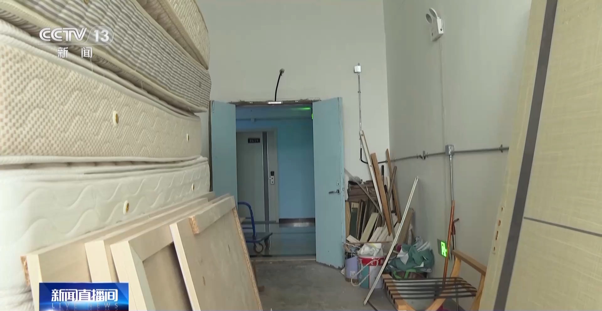 记者随检查组在江苏连云港的一家小宾馆一楼大厅检查时看到,室内消火栓、灭火器和安全疏散标识牌被沙发和绿植遮挡,安全疏散出口处放置了一个冰柜,位于大厅一侧的消防控制室堆放了大量杂物,也没有专人进行值班,检查组找了很长时间才找到消防设施联动控制设备。
