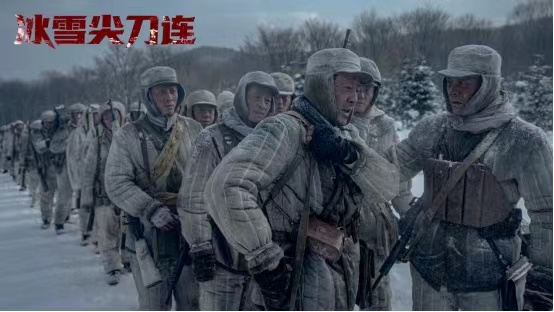 钢七连奉命进入朝鲜后,和五连作为尖刀连共同执行穿插任务,要在短时间内隐秘急行军,赶赴新兴里。一望无际的密林、白雪茫茫的雪原、纷纷扬扬的雪花、冰冷刺骨的寒风,在厚厚积雪中艰难行军的钢七连、空中不断穿梭美军侦查机……《冰雪尖刀连》真实还原了钢七连入朝作战,冰雪行军的场景。观众纷纷点赞:“全实景拍摄,冰原雪景都是真的,战士们说话都呼出白气,细节很用心。”