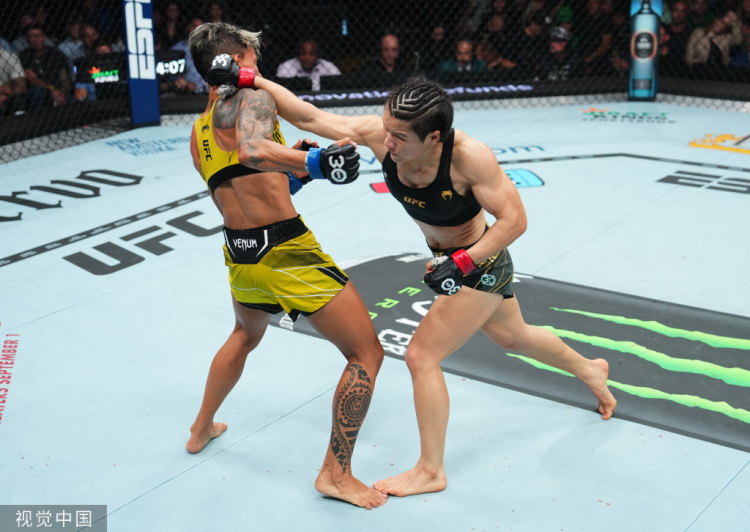 中新社北京8月20日电 当地时间19日,在美国波士顿举行的UFC292比赛中,现任女子草量级冠军、中国名将张伟丽战胜来自巴西的挑战者阿曼达·莱莫斯,以296次单场总打击数,创造了新的UFC(终极格斗冠军赛)女子历史纪录,成功卫冕金腰带。