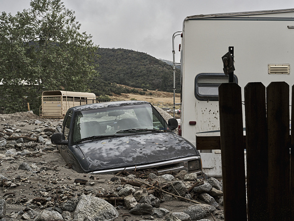 在圣贝纳迪诺县奥克格伦地区,一场严重的泥石流席卷了街道。居民布鲁克·霍斯普尔21日整个上午都在进行清理,并试图解救受困的邻居夫妇,后者的家被深约1.2米的淤泥包围。