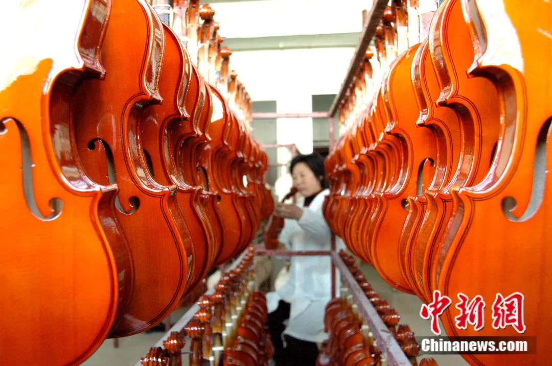 不止于此,为了打入国际市场,黄桥镇的提琴行业在材料和技术上不断钻研创新,他们首创了一种对提琴木料处理的新技术,提高了效率和音质。