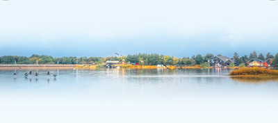 浙江金华市兰湖旅游度假区,鸟儿飞掠过澄澈的水面。