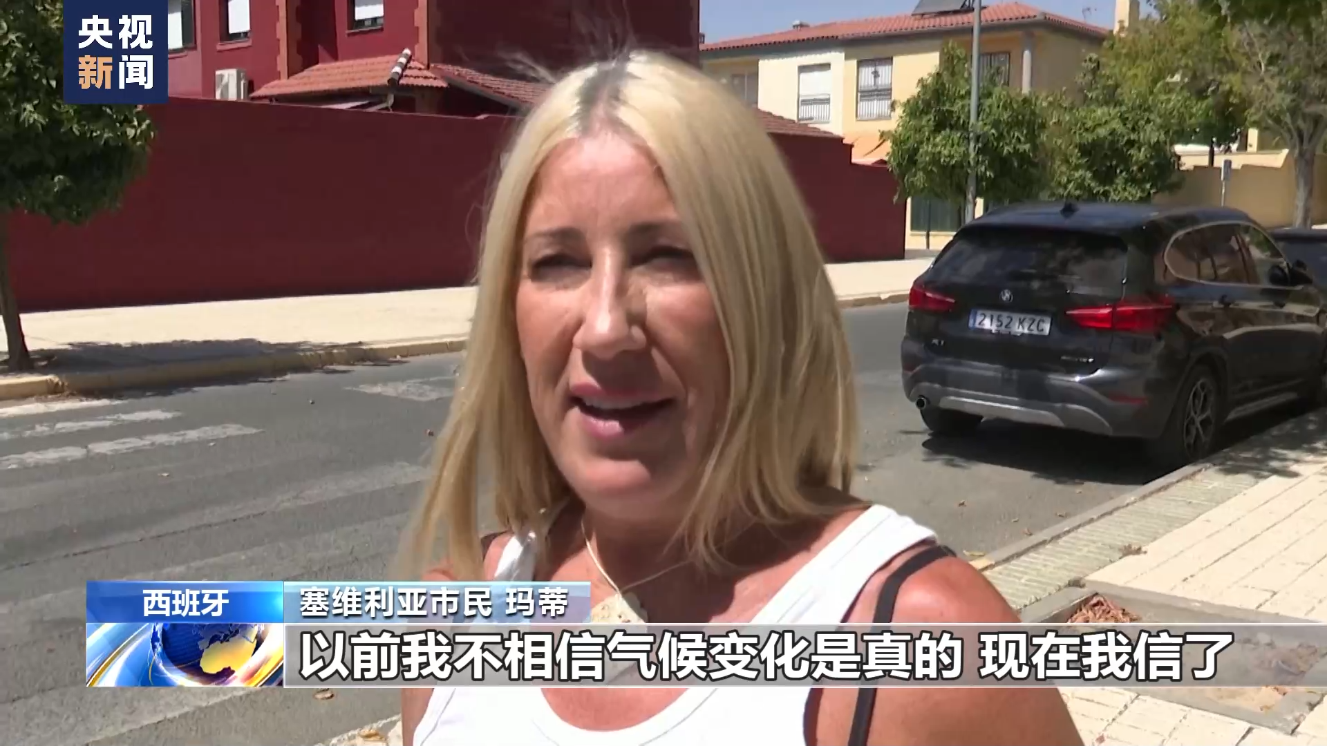 塞维利亚市民 玛蒂:以前我不相信气候变化是真的,现在我信了。每一天、每一年,我都见证了气温上升,夏天一年比一年更难熬。在我小时候,35摄氏度就算热了,现在我们见过48摄氏度的气温。我发现气温变化的幅度越来越大,气候变化已经成了现实。