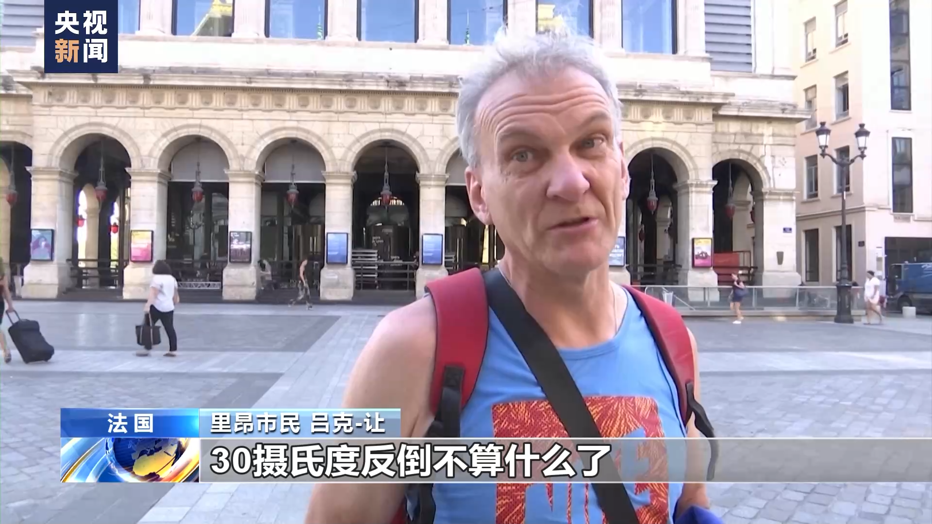 里昂市民 吕克-让:小时候我和父母旅行的时候,30摄氏度就是最高气温,还挺热的。但是跟现在38、39摄氏度的热浪一比,30摄氏度反倒不算什么了。