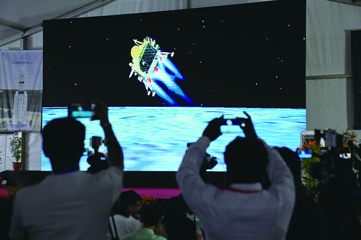 【环球时报驻巴基斯坦特派记者 程是颉 环球时报特约记者 宇同】当地时间23日18时04分,印度“月船3号”探测器在月球南极实现软着陆,这意味着印度成为第四个实现月球表面软着陆的国家,同时也是首个在月球南极附近实现受控软着陆的国家。消息公布后,美国国家航空航天局(NASA)和欧洲航天局向印度发去贺电。据印媒报道,印度各界高度关注此次任务,总理莫迪在南非参加金砖国家领导人第十五次会晤期间特意抽空观看了全程直播,并第一时间发表电视讲话,称“太空已无法限制印度,人类探索的脚步会继续向前,不会止步于月球”。有分析认为,除了为太空探索带来科学价值,“月船3号”还承载着莫迪的“太空雄心”。一些国际媒体评论称,随着印度成功完成此次探月任务,一场新的探月竞赛正在展开。很多国家都跃跃欲试,希望在月球相关计划中取得突破。