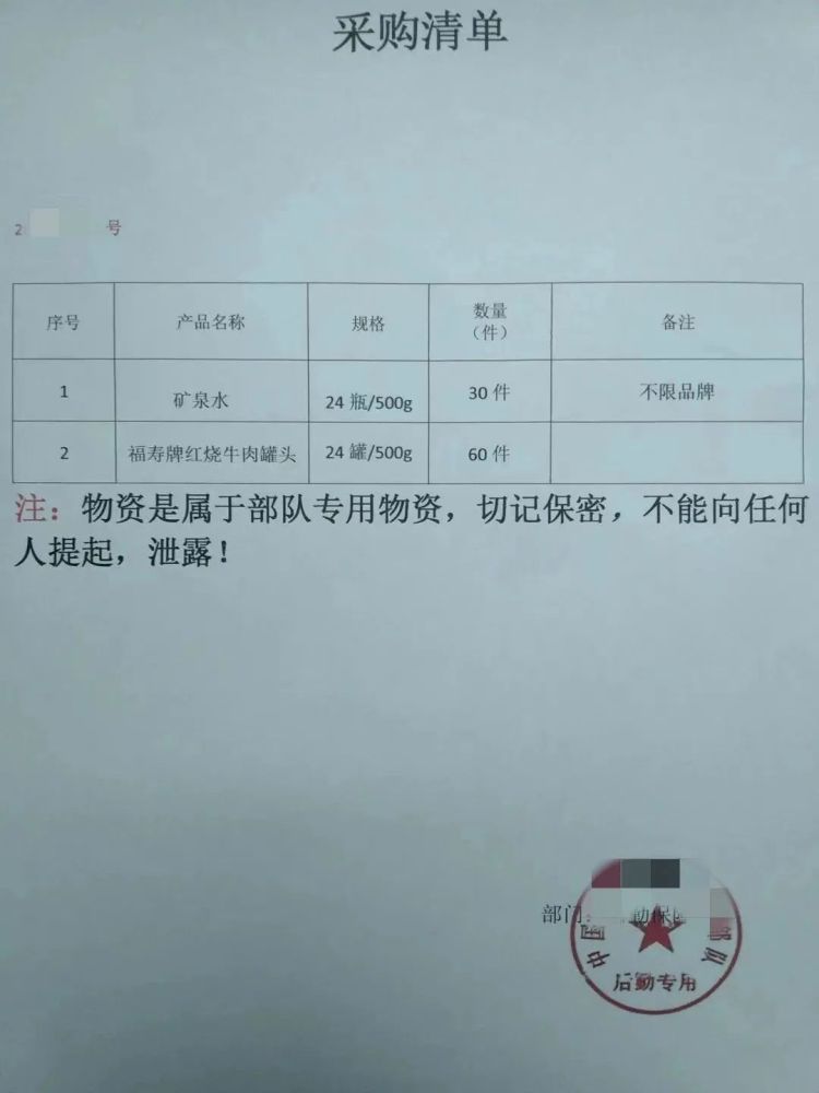 王女士看见采购单上盖了“中国人民武装警察部队后勤专用章”,更是深信不疑,立即按照要求列了一个报价单,“黄干事”看后表示,他将“给领导审核”后再联系她。6月13日,“黄干事”给王女士打来电话表示“领导审核通过了”,但他们还需要采购30件矿泉水,以及60件罐头,为了便于一次性取货希望王女士能帮忙“代购”。