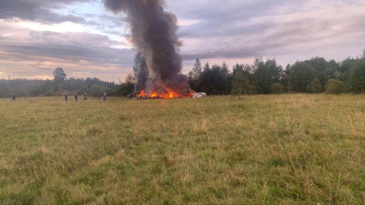 莫斯科时间17时54分,这架私人飞机从莫斯科谢列梅捷沃机场起飞,飞往圣彼得堡。起飞后不久,飞机即从雷达屏上消失,机组人员也没有回应地面调度人员的多次通话问询。18时40分左右,飞机坠毁在特维尔州西北部一个名为库仁基诺的村庄附近。据俄罗斯Tsargrad电视台报道,俄联邦航空运输局委员会消息人士透露,普里戈任乘坐的飞机“是被炸毁的”。俄罗斯知名网络媒体Meduza则撰文称,有目击者表示飞机坠毁前发生两次爆炸,而在网传的坠机残骸照片中有多个疑似弹孔,或与防空导弹有关,“但图像质量较低,无法准确判断痕迹的性质”。
