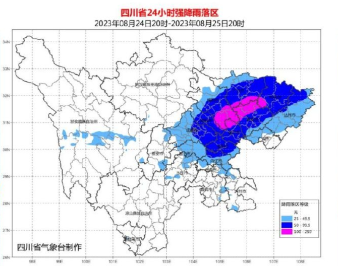 根据四川省气象台天气预报情况,结合四川省地质环境条件,8月24日20时到8月25日20时,全省地质灾害气象风险预警结果如下: