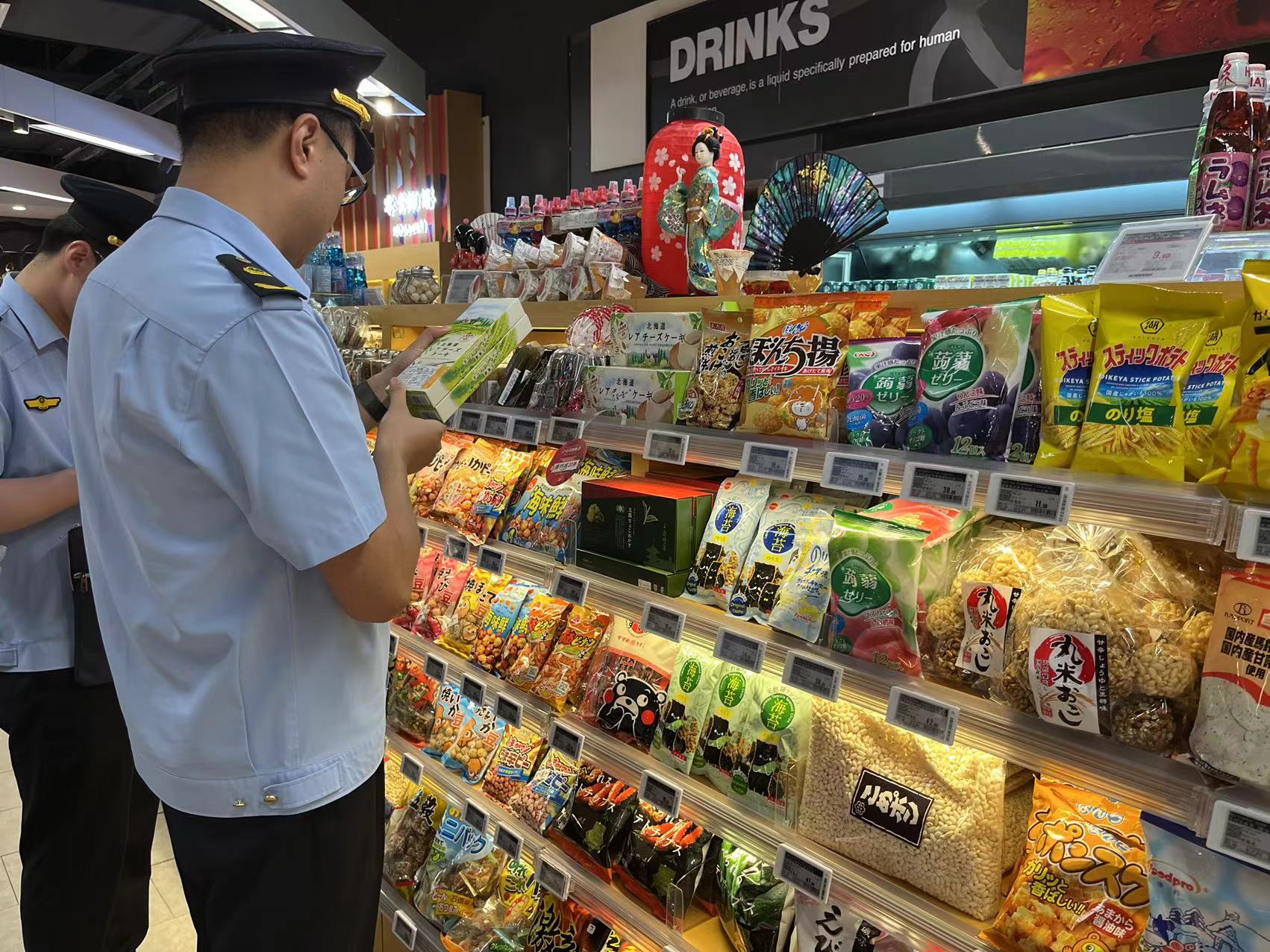 检查中,执法人员发现,一款名为“弹弹蟹柳冻鱼糜制品”的包装食品,中文标签上只标明原产国为日本,生产商地址显示为英文。最终,根据现场查验,显示产地为日本石川县,不在中国海关此前禁止进口的日本福岛等十个县(都)的范围。在现场检查中,执法人员没有发现禁止进口的日本食品。